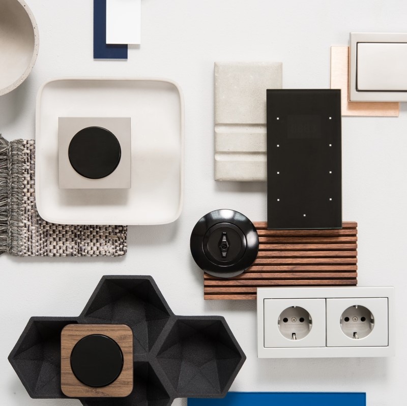 - Włączniki i gniazda – stylowe i funkcjonalne, dostępne w różnych wykończeniach.